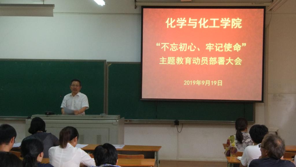 9月19日下午,化工学院在崇礼楼107召开“不忘初心、牢记使命”主题教育动员部署会,严格按照学校对主题教育的部署要求,对学院主题教育工作进行全面动员与重点部署。学校主题教育第二督导组组长、副校长唐敏出席会议并讲话,副组长陈桂枝到会指导。学院党委书记樊敏主持会议,学院全体院领导、各党支部书记、全体党员参加会议。