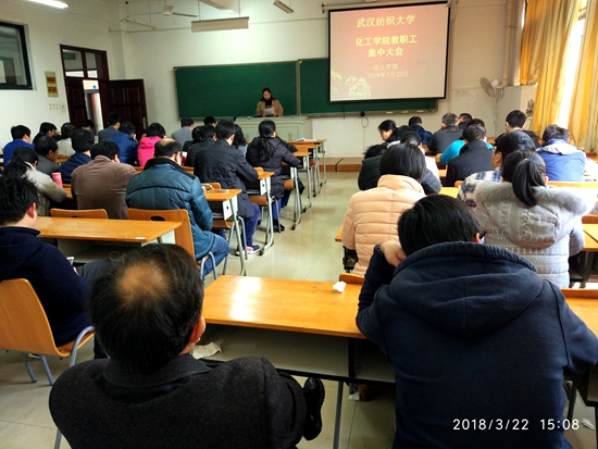 22日,学院召开集中会议,传达学习学校2018年党建工作要点,推进学院年度党建与思政工作。全院教职工参加大会。