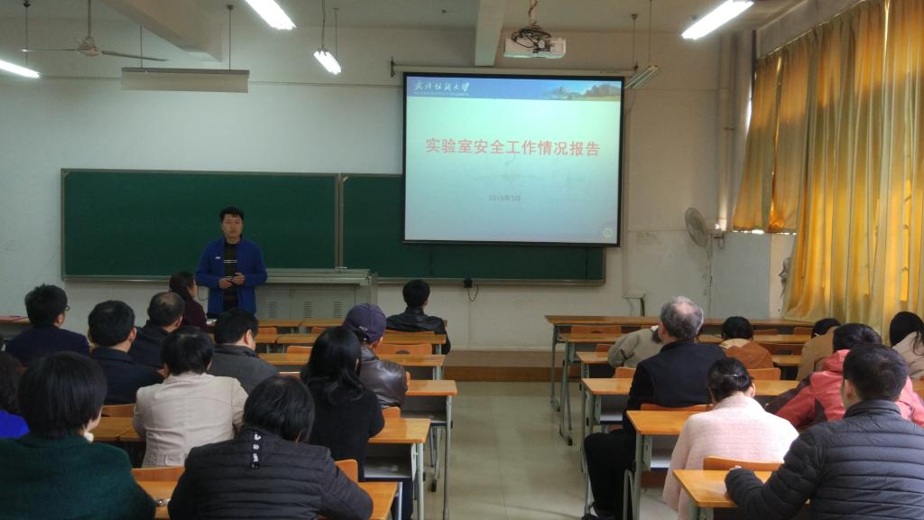3月14日,化工学院召开全体教职工会议,集中学习《武汉纺织大学实验室安全管理办法》,进行实验室安全教育。