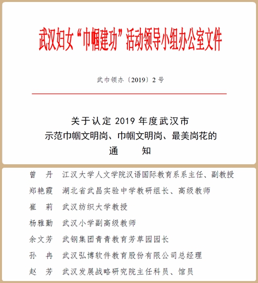 据悉,“最美岗花”是武汉市妇联为了宣传和弘扬在全市各行各业中立足岗位、履职尽责、敬业奉献的优秀职业女性。“最美岗花”获得者是经各单位推荐、个人自荐、微信网络投票等环节推选出优秀代表,再通过PPT演示、小品、微电影等形式的现场展示,由评委现场打分,经严格审核,综合评选出,整个评选过程历时10个月。