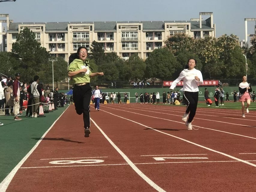 (学生冲向终点线)