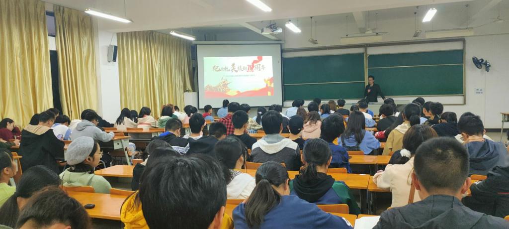 为纪念中国人民志愿军抗美援朝出国作战70周年,弘扬抗美援朝精神,化工学院于11月8日晚7点,在崇礼楼211教室,学院团委书记谈鹏以《铭记伟大胜利 弘扬抗美援朝精神》为主题,引领2020级新生深入了解抗美援朝战争的意义,铭记伟大胜利。