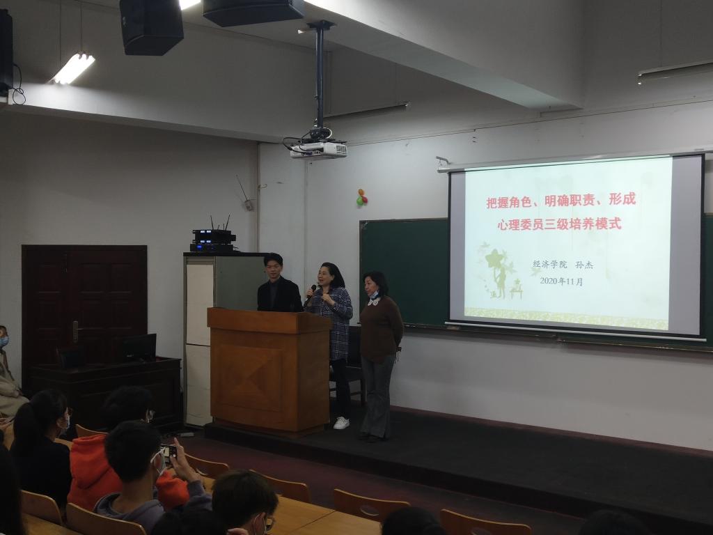 11月19日下午14:30 ,在7号楼T301教室,“化”心家园团辅建设研究小组,以《把握角色 明确职责 形成心理委员三级培养模式》为主题,对全校心理委员开展专题培训 。