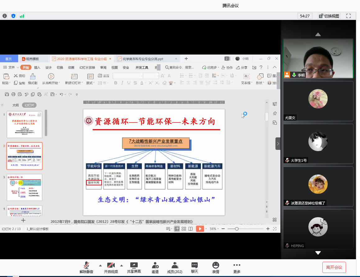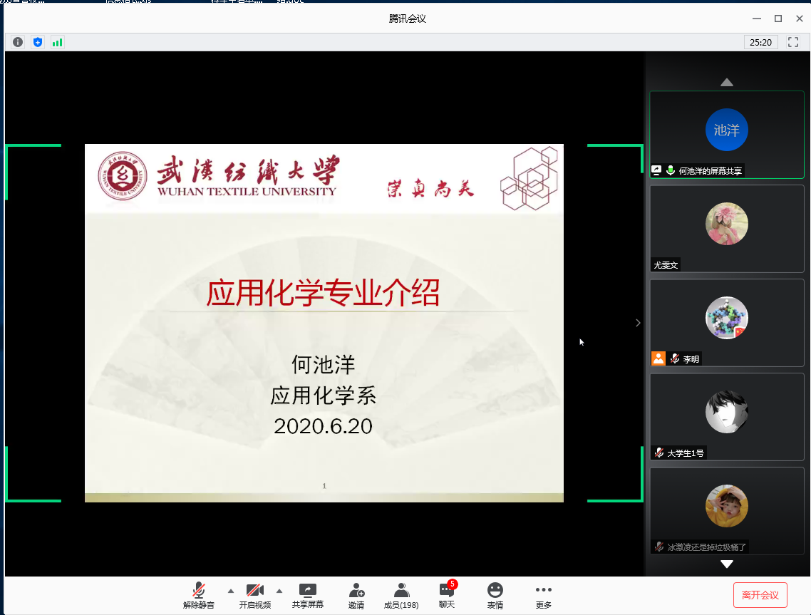 为积极推进“按大类招生,宽口径培养”人才培养 模式改革,化工学院于2019年开始实施大类招生。为了切实做好化学类本科专业学生分流工作,引导学生做好专业发展规划,6月10日中午12点半,化工学院专家学者齐聚“空中”会议室,为2019级学生开展专业介绍讲座,为学生科学选择专业护航。