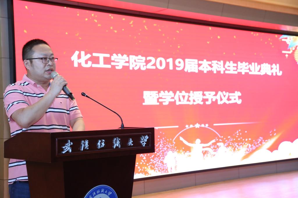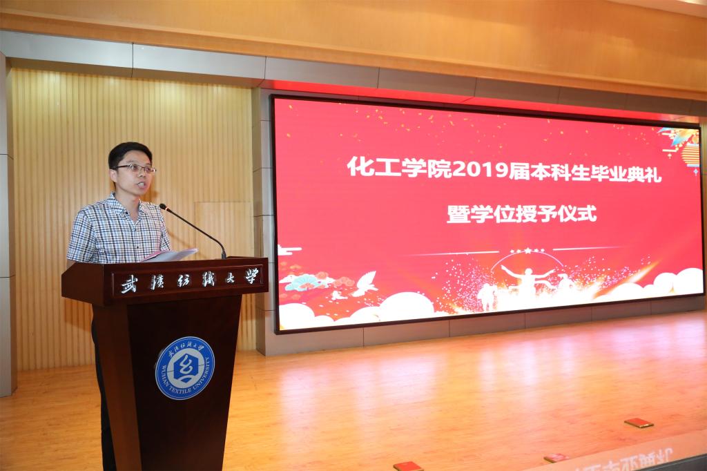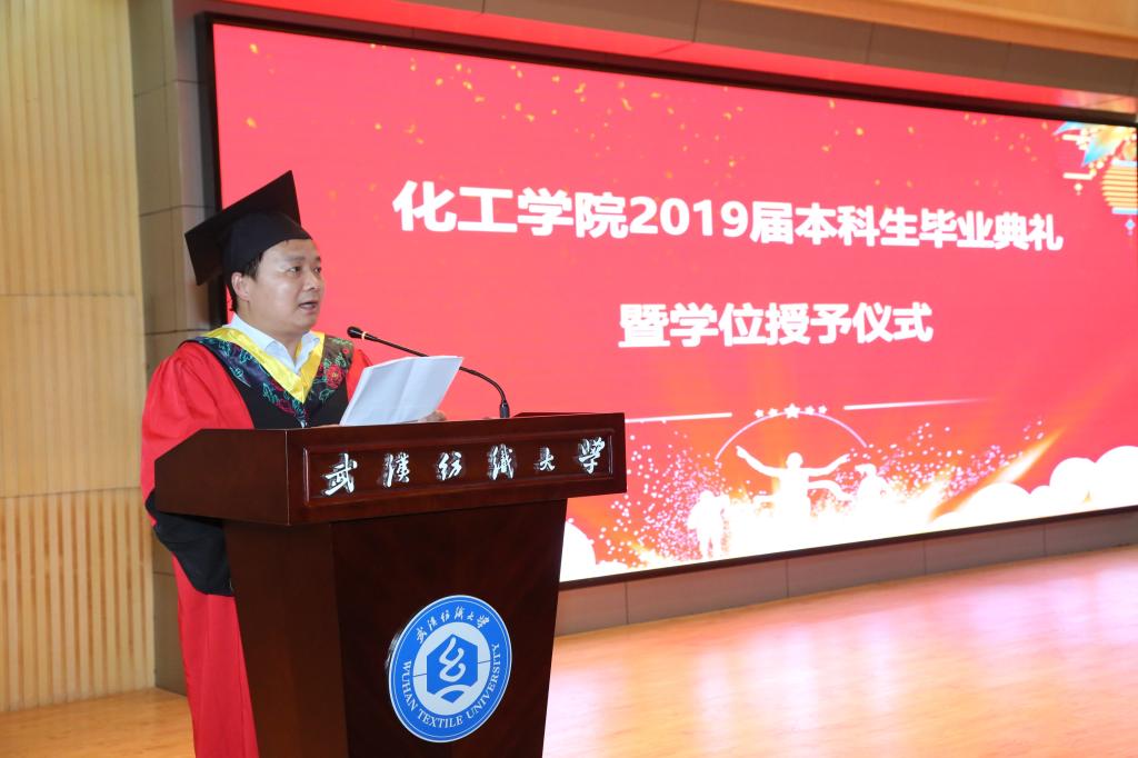 “在以后的人生道路中,我们会带着理想与信心启程,去迎接新的机遇和挑战。当取得成绩时,我们会自豪的向母校报告;当身处困境时,我们会去寻找内心深处的纺大精神,去不断探索,不断前进。”轻化工程11502班王召伟代表全体毕业生表达了对学院领导、老师的感激之情,对同学朋友的不舍之情,以及今后面对新的机遇与挑战不畏艰难的拼搏之心。