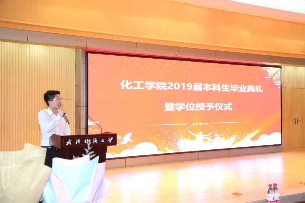 四年朝夕相处,今朝即将分别,陈飞飞老师代表学院全体教师向全体毕业生表示祝贺,同时他也希望同学们能树立终身学习理念,努力做到知行合一;不忘初心,做到有理想、有志向、有目标;学会育人交流,学会做人,学会做事,学会合作。