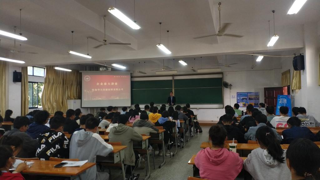 10月21日下午2点,在阳光校区6号楼210教室,化工学院举办企业家大讲堂。珠海华天印新材料有限公司总经理助理缑旭翔助力2020级新生做好大学规划。