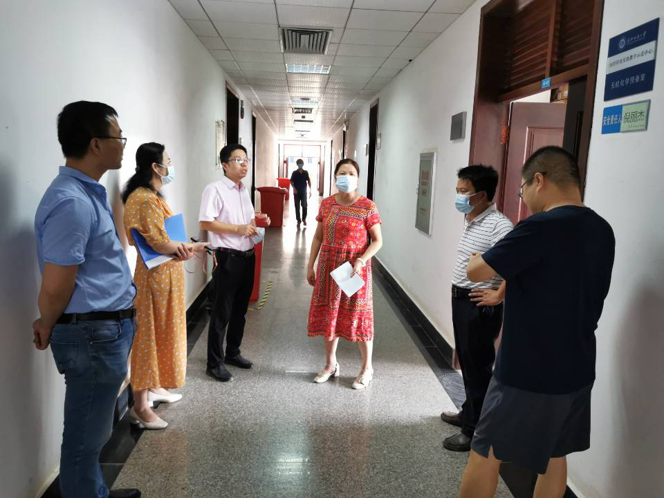 8月31日,学院党委书记樊敏、院长李伟一行到实验教学示范中心检查指导工作。由于疫情原因,本学期承担了正常教学任务,同时将承担上半年的补课工作量。实验示范中心面临上课时间安排、人员工作安排、实验室安全管理、疫情防控等多方面的突出问题。学院领导现场协调、指导,将各项工作进行了妥善安排,并强调了实验室安全管理事无巨细,要求各位老师进一步加强责任意识,使学院的实验室安全管理工作一如既往地保持在学校的前列,为学校的安全发展尽一份力。
