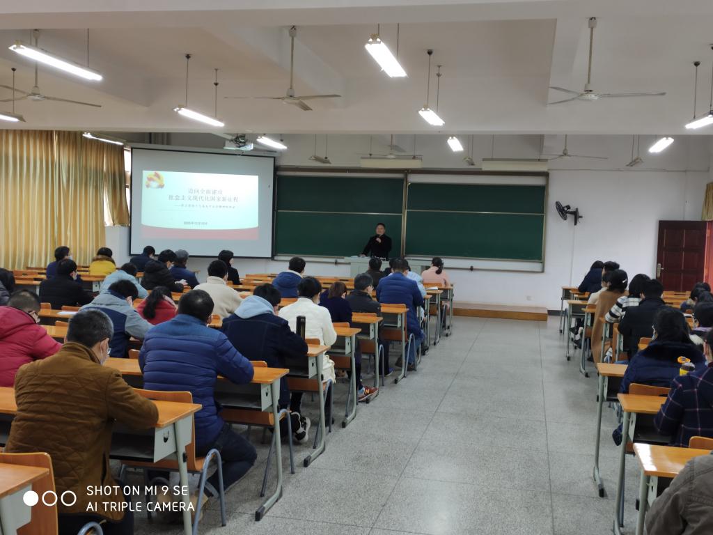 12月10日下午,化工学院在崇礼楼211举行党的十九届五中全会精神宣讲会,学校宣讲团成员、校党委委员、教师工作部部长高建勋以《迈向全面建设社会主义现代化国家新征程》为题作宣讲报告。学院全体教职工、学生代表参加了宣讲会,宣讲会由学院党委书记樊敏主持。