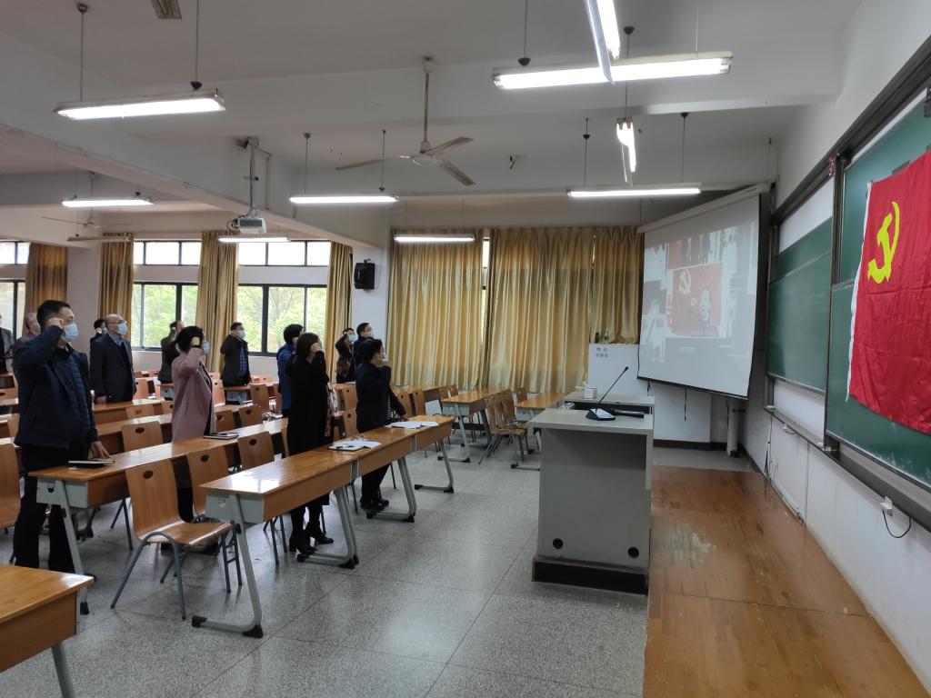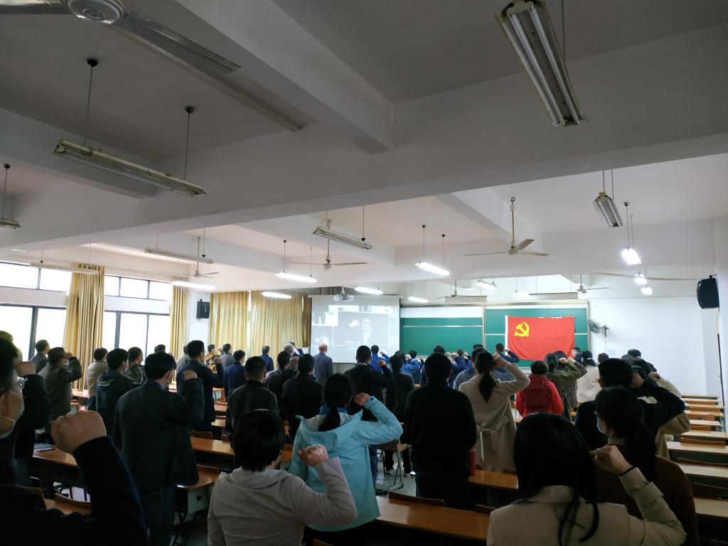 4月1日下午,按照学校党委部署,化工学院党委在崇礼楼210教室召开党史学习教育动员大会,集中观看《榜样5》,学习疫情防控阻击战中先进基层党组织和优秀共产党员的典型事迹,开展重温入党誓词主题教育活动。学院党委书记樊敏带领大家共同学习了习近平总书记在党史学习教育动员大会上的重要讲话精神,传达学校党史学习教育动员大会部署要求,全体教职工参加了会议。