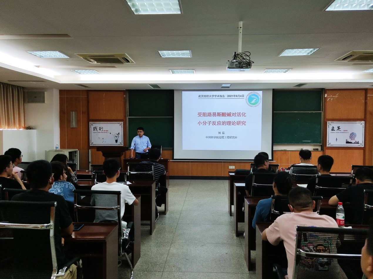 2021年6月4日,应化学与化工学院、生物质纤维与生态染整湖北省重点实验室的邀请,中国科学院过程工程研究所刘磊研究员访问我院,并为学院师生作了题为“受阻路易斯酸碱对活化小分子反应理论研究”的学术报告。本次报告由化学与化工学院院长李伟主持,学院教师及研究生参加了本次报告。