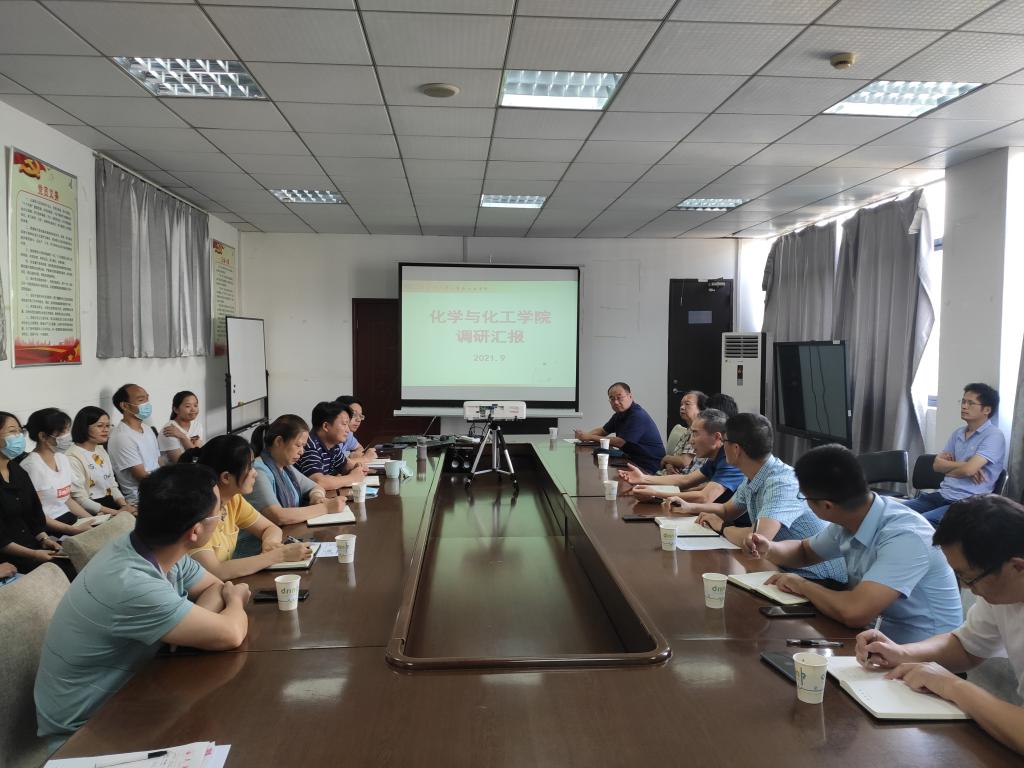 9月16日下午,校长徐卫林到化工学院调研指导工作,听取了学院工作汇报,对学院工作提出了指导和要求。发展规划处处长黄纯辉、学校办公室副主任周闰禄陪同调研。化工学院领导班子成员、教授代表、各系主任、青年教师代表参加了会议。