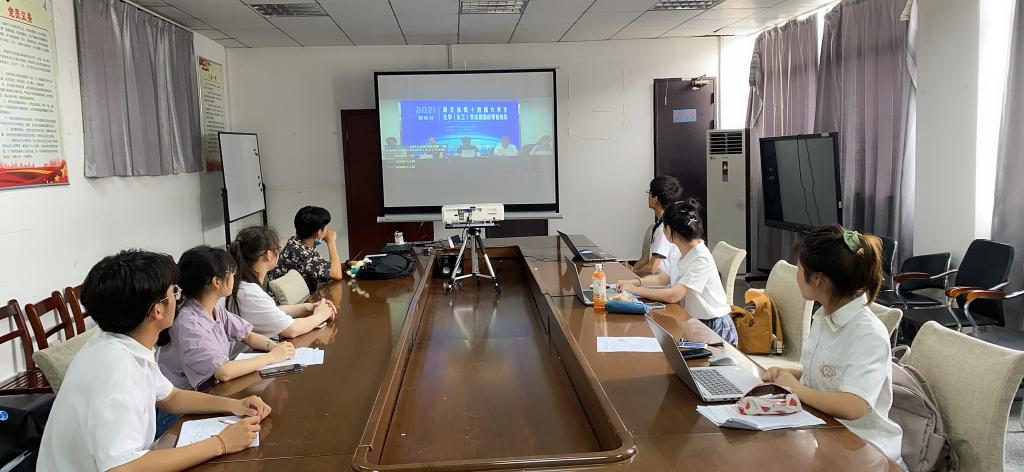 开幕式后,化工学院10名参赛学生通过线上腾讯会议室分会场,在线上用PPT汇报其科研成果,并接受专家、评委的线上质询、评议。经过一天的激烈答辩与评议,综合评判出一、二、三等奖。