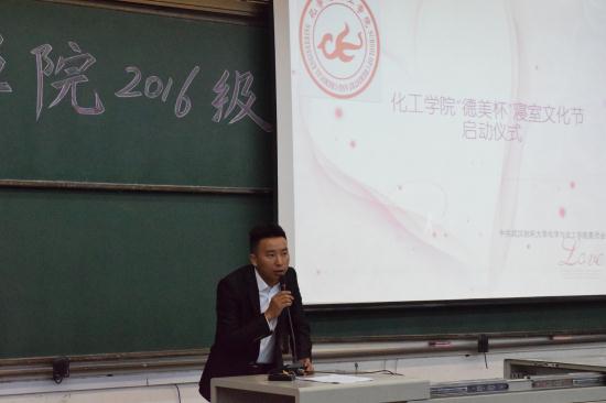 会议伊始,化工学院学生会主席傅志弘发表讲话,他表示寝室是大家生活学习四年的家园,每一个同学都有义务有责任让自己的家园变得更加温馨美好。然后,肖可欣学姐代表大二的学长学姐发表了自己对于寝室文化节的看法,以及对大一新生如何装扮寝室这一活动提出了宝贵的建议。