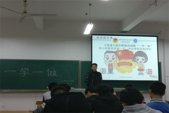 活动中,杨赐首先介绍了由中共中央政治局提出的“四个意识”的主要内容,其次着重介绍了共青团中央第一书记秦宜智,并强调了“一学一做”教育实践的主要意义。并为同学们普及了团员相关的知识,同学们都踊跃发言,积极参与,使得课堂气氛格外活跃。