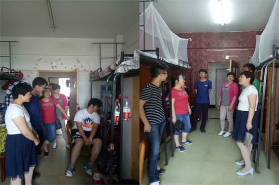 2017年6月7日12时,结合目前正在开展的学生安全“6+1”专项治理和专项教育活动,化工学院分党委副书记凡蓉蓉老师与各年级辅导胡子英、王娟娟、谈鹏老师来到学生宿舍进行“周检”。
