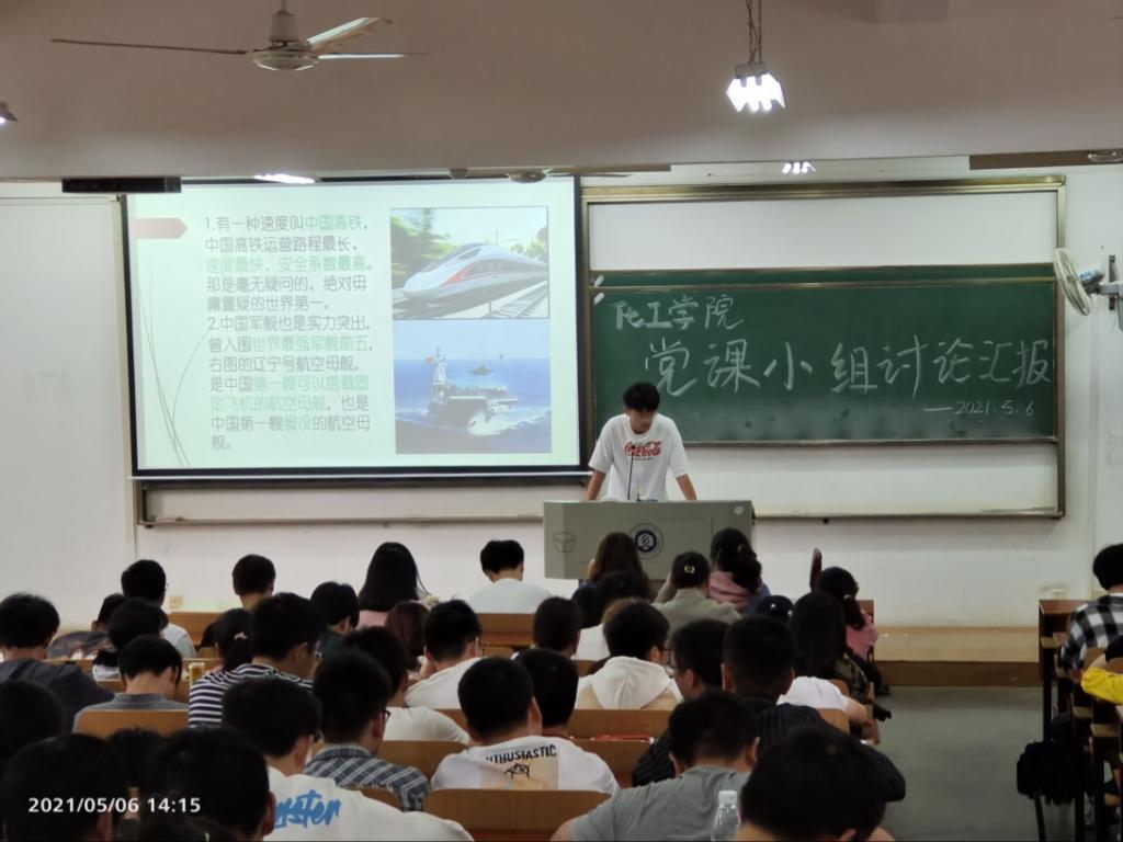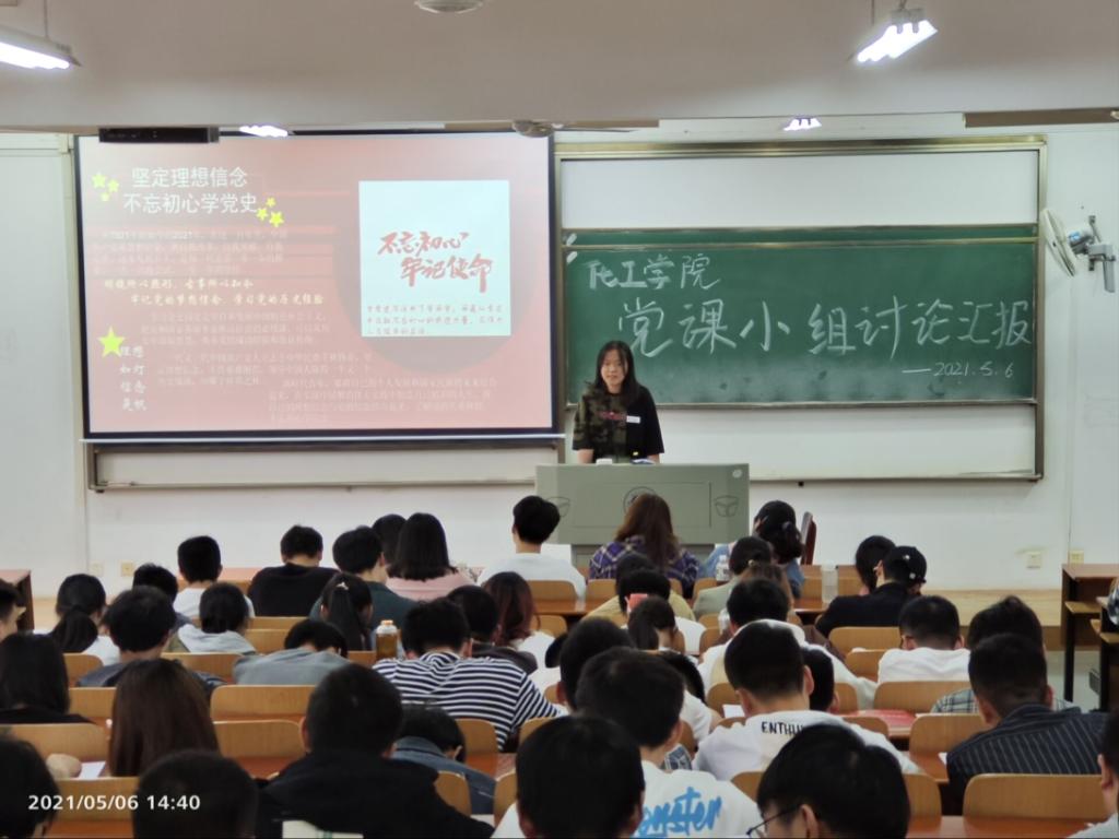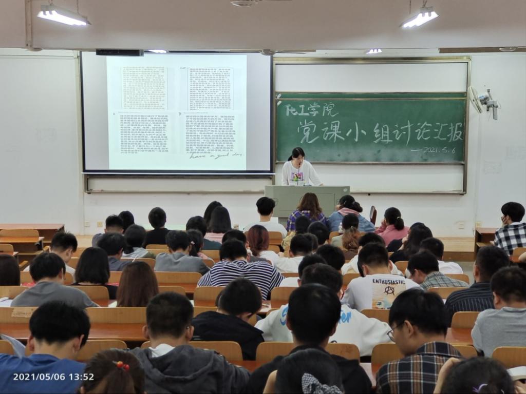2021年5月6日下午1:30,化学与化工学院第79期分党校201名学员在03-120教室召开以“学党史、讲党史”为主题的小组讨论汇报演讲。