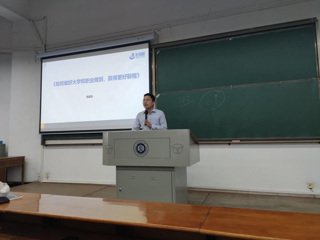 据悉,李建华作为好易职公司的创始人,有着9年的校园及社会招聘经验,是湖北省教育厅推荐的省创新创业导师。此前,李建华已在多所省属高校讲授了职业规划及选择、知名企业求职技能等课程,开展了累计超过100场的各类培训,学员中目前已有多位进入百度、腾讯、阿里巴巴、华为等业界知名企业。此次授课也是学院职业生涯规划课的部分内容,旨在引导2019级学生进一步明确目标,激发自己不断为实现各阶段目标和终极目标而进取。