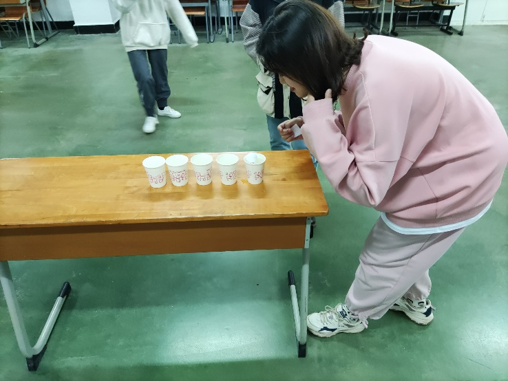 在四号教学楼106教室,化工11901班开展了本学年的第二次团辅活动。首先,开始本次活动的第一个游戏:乒乓球跳跃。同学们需要把乒乓球吹过五个装满水的纸杯,掉落即为失败。第一个参与游戏的是周雨洁同学,可能是想把乒乓球快速吹到下一个纸杯里,一开始用力过猛一口气将杯子里的水吹出了大半,乒乓球纹丝未动,水却溅到了桌子上和脸上,参加游戏的同学为她加油呐喊。接下来的同学借鉴了周雨洁同学的经验,快速掌握了游戏要领,如法炮制一个接一个的吹过了乒乓球。第二个游戏是气球运纸杯,给大家分发了气球后,粉粉的气球激发了大家的童心,一个个开始将气球吹鼓系紧开始拍了起来。玩笑过后开始认真对待游戏。这个游戏就是用气球吹鼓运输由两个杯底合在一起的纸杯,分为两队开始竞赛。由于有了比拼,大家都很是卖力,唯恐落下了另外一队,在紧张的比赛中,女孩子多的这一队取得了胜利。在游戏成功的喜悦中,气氛持续升温。
