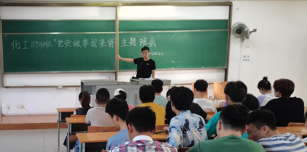 为了庆祝建党100周年,深入推进党史学习教育,提升大学生思想教育实效,2021年6月6日星期天下午6点,在崇礼楼210教室,化工学院19级学生开展“党史故事我来讲”系列活动,让大学生在常学常讲中进一步坚定理想信念,推动党史学习教育入脑入心。