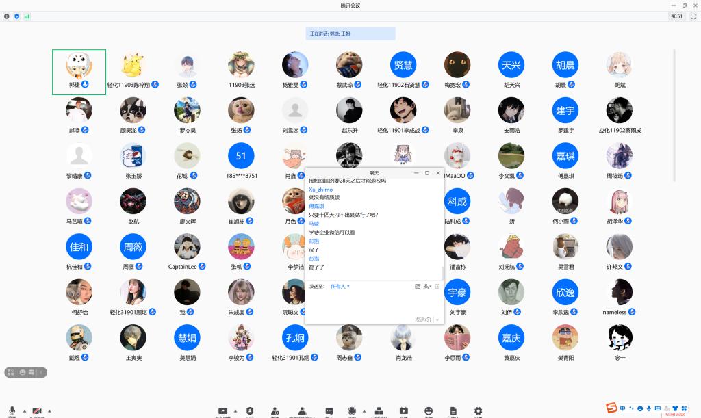 会议结束后,各年级辅导员就学生关心的问题,进行了线上沟通交流。