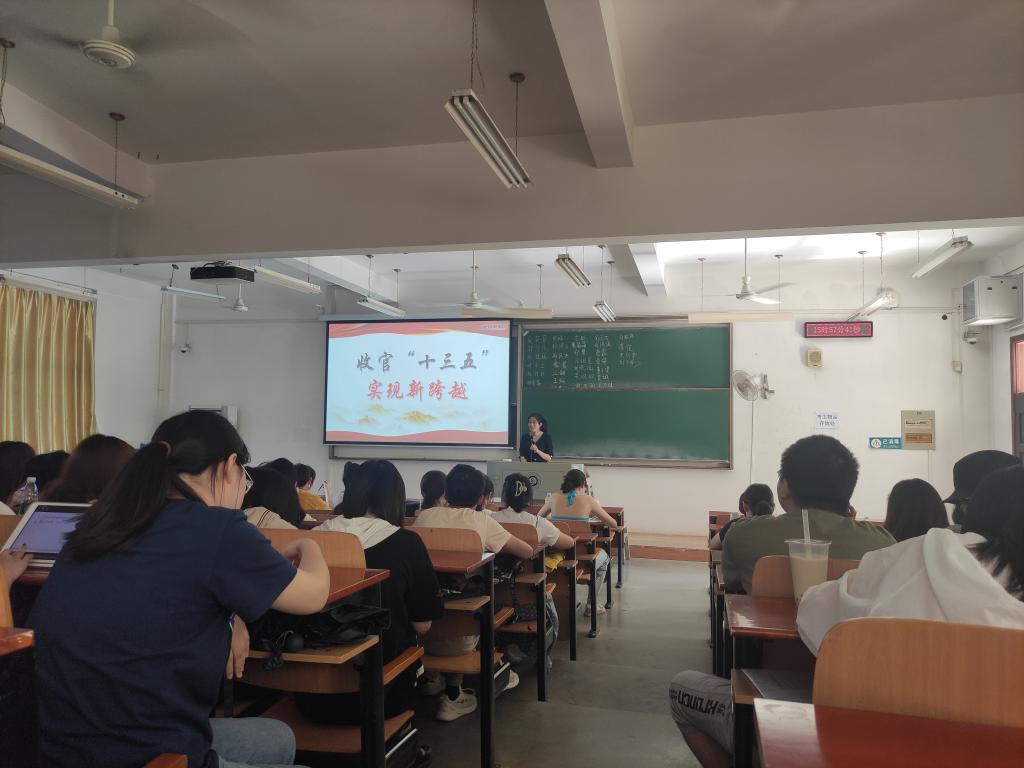 尤雯文详细讲述了国民经济和社会发展五年计划纲要的含义,并从国家第一个“五年计划”开始,梳理和回顾了从1953年到2020年,国家的十三个“五年规划”的制定背景、规划主题、主要成就等等。她表示,制定和实施“五年规划”,对于全面贯彻落实党和国家的战略目标,充分发挥社会主义制度优势,引领经济社会发展,推进社会主义现代化建设,对我们创造出世所罕见的经济快速发展奇迹和社会长期稳定奇迹,发挥了卓有成效的作用。习近平总书记一直强调,凡事预则立,不预则废。五年规划的伟大成效就是最有力的证明。她希望同学们在基于对自己的性格、兴趣、爱好、专业以及行业状况、社会需求等等因素,进行综合分析的基础上,对自己的大学生活进行的合理规划,有了规划,就有了目标,有了前进的方向,然后把大目标分解成若干个小目标,通过一个个的小目标的实现,既能朝着大目标越走越近,也能从中增强成就感、自信感,等到毕业的时候,有着自己的满满收获。
