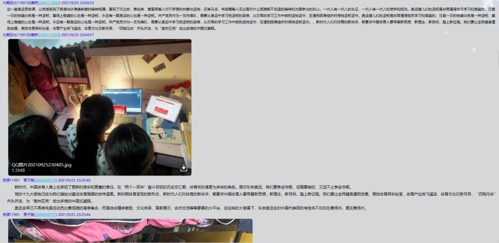 苦干团成员在观看之后组织团组成员大讨论,苦干团成员感慨颇多:奥林匹克精神是坚忍不拔、永不言弃的坚毅精神。它是运动员平日里夜以继日的拼命训练,是运动员比赛场上展现飒爽英姿的基石。通过学习本次奥运思政大课,苦干团成员们切身体会到了什么是"一往无前”方为坚韧。奥运的征程还在继续,享受奥运精神,展现大国风范的理念将继续并永远在每个国人心中沸腾、燃烧。苦干团成员马璇说道:“我们的学习和生活也是一样的,要坚持不懈的学习,尝尽生活的各种味道,要不怕苦,为我们的祖国争光。”