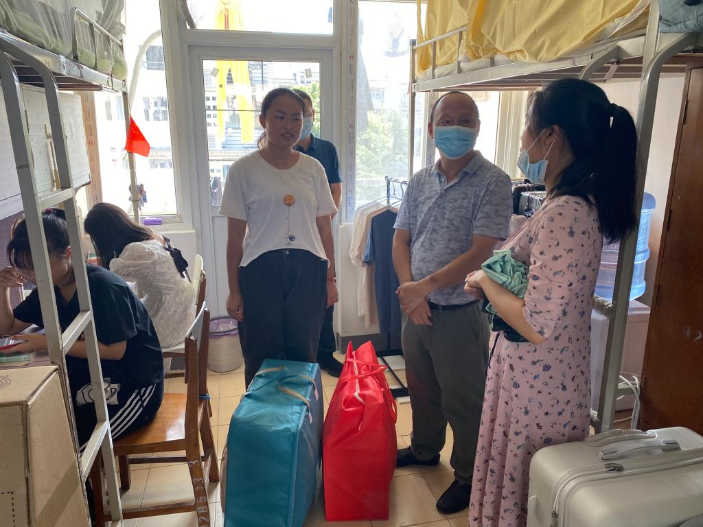 国庆佳节,举国欢庆。10月4日中午12点半,学工部部长杜勇、副部长武猛、校资助中心曹敏娜老师,在学院党委副书记尤雯文的陪同下,深入化工学生宿舍,看望慰问学院2021级新生杨青荷。