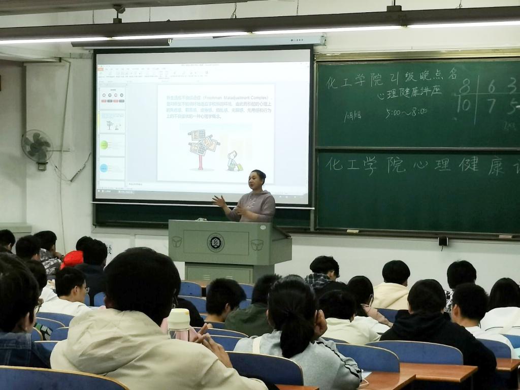为了让同学们更好的适应大学生活,积极面对未来的学习与工作,10月10日下午5点,化工学院组织2021级新生在崇志楼T101教室举办题为《大学生活 从“心”开始》的心理讲座。我院辅导员胡子英老师担任本次讲座的主讲。