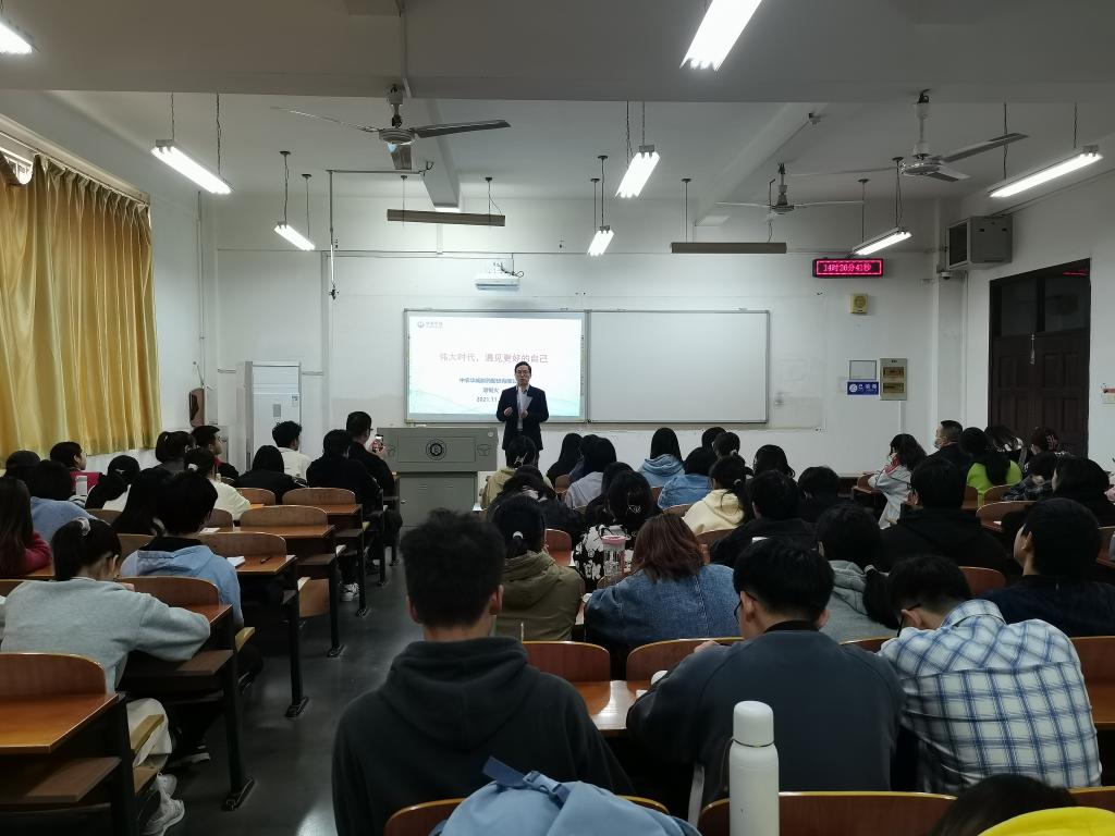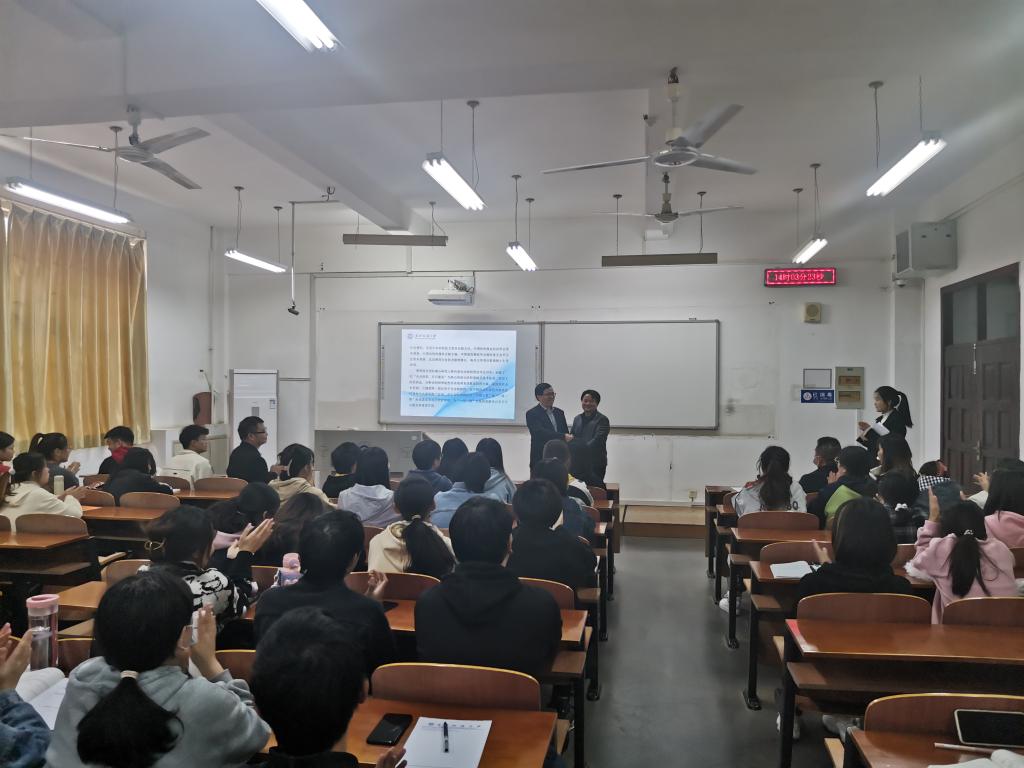 当谈到创业,游锡火详细讲述了自己的两个研发项目,阿维菌素和比硅酮,他表示,正是由于长达十年如一日的坚持不懈,才成就了公司全球领先的包虫病防空系统供应商的地位。他勉励同学们要刻苦钻研,久久为功。同时,他就包虫病进行了科普,提醒同学们在外旅游时的注意事项。他强调,这是一个变化的时代,但同时也是一个伟大的时代,同学们生逢其时,时代不辜负年轻人,年轻人更应该用实干来不负韶华,他用“时雨春风、时不我待、时势英雄、时望所归”十六个字和同学们共勉。同时,他分享了自己对成功的理解,成功不是金钱,不是社会地位,而是“让世界更美好”的价值体现。