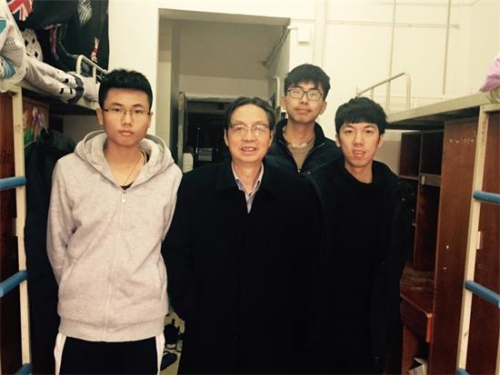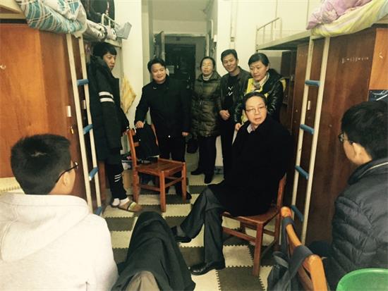 1月13日下午,校长韦一良教授来到1C宿舍楼,看望慰问结对帮扶的贫困生,并与结对的轻化11503班和结对宿舍的同学们亲切交谈,共话奋斗梦想和大学生活,指导同学们用好大学资源、培养实践创新能力、实现大学生的独特价值。