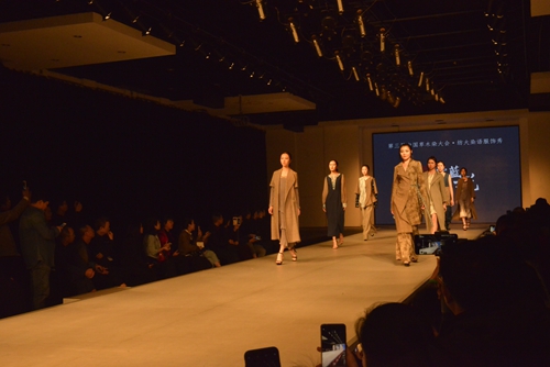 晚上,与会专家学者齐聚南湖校区服装表演厅共同欣赏“纺大染语·爱蓝说棉麻服饰秀”。服装学院王妮副教授以“爱蓝说”为主题,设计了四十余套植物蓝染棉麻服饰。赏心悦目的服装秀表演折射出现代服饰设计的新视角,并展示了传统工艺的独特魅力。