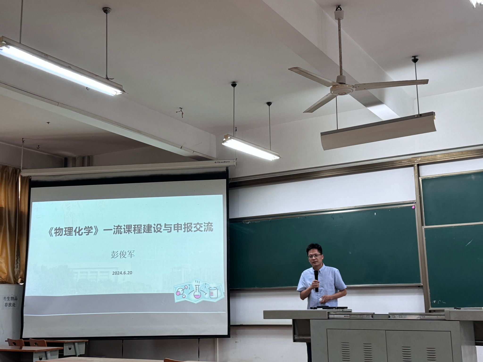 为全面贯彻落实新工科建设要求,深化课程建设改革,提升人才培养质量,6月20日下午,化工学院于06-222教室开展《物理化学》一流课程建设与申报经验交流会,讲座由院党委书记杜勇主持,学院全体教职工参与会议,大学化学中心主任彭俊军副教授进行了主题分享交流。