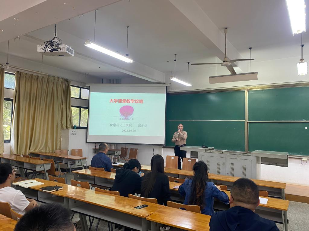 在报告中,吕少仿教授结合数十年的教学经验和具体案例从备课攻略、教学攻略、板书攻略、说课攻略和评课解读等五个方面进行了系统的阐释,并对绪论课教学、启发式教学、说课、备课关键点的发现、课间各知识点的过渡、兴奋点的引入与表达、教学感染力的提升、“教学设计+教学技能+立德树人”的课堂教学设计模型等进行了示范教学。吕少仿教授指出,教师要忠诚党的教育事业,热爱人民教师职业,引导青年学生做到“明大德、守公德、严私德。”通过传递知识、传播思想、传授真理,用自己的学术造诣开发学生的智慧;通过塑造灵魂、培育精神,用自己的人格魅力启迪学生的心灵,更好地完成教书育人的神圣使命。