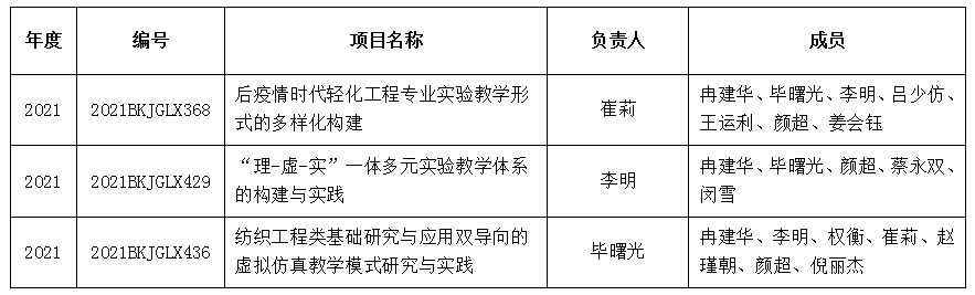 根据《关于组织申报“纺织之光”中国纺织工业联合会高等教育教学改革项目的通知》要求,经学院推荐,学校组织专家评审,化工学院获3项中国纺织工业联合会教学研究项目。