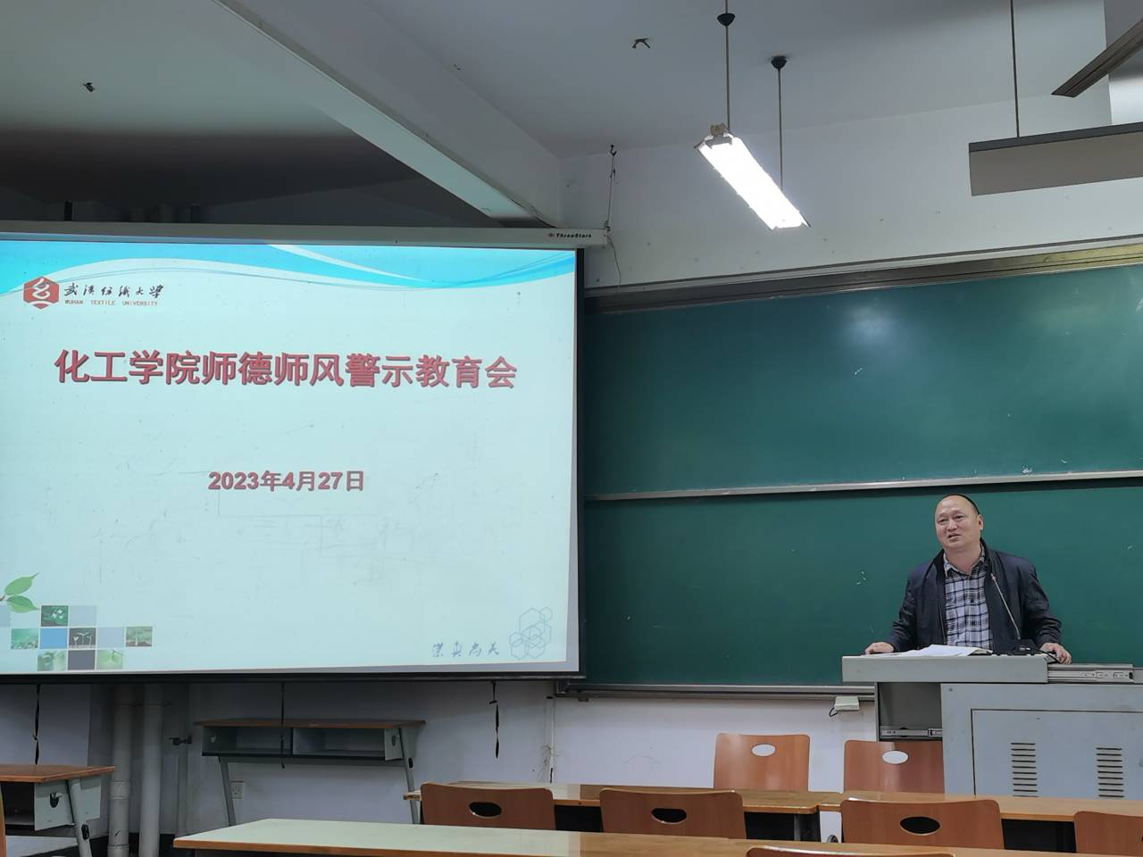 为充分发挥典型案例警示教育作用,切实提高广大教职工规矩意识、底线思维,规范从教从业行为。2023年4月27日下午,化学与化工学院组织全体教职工在崇礼楼210教室开展师德师风警示教育会。