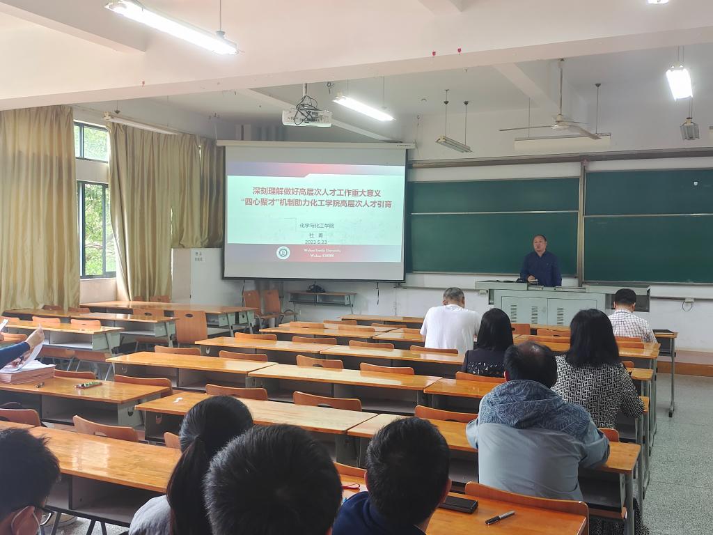 为深入学习贯彻习近平新时代中国特色社会主义思想,5月23日上午,化工学院在崇礼楼210教室开展“四心聚才”高层次人才引育主题党课,全体教职工参加学习,党课由党委书记杜勇主讲。
