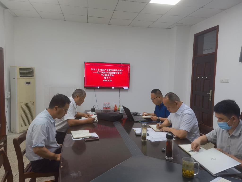 6月30日上午,化工学院举行党委理论学习中心组6月份集体学习,认真学习《中国共产党廉洁自律准则》和《中国共产党纪律处分条例》,院党委书记杜勇主持学习会,学院党委委员、班子成员参加。