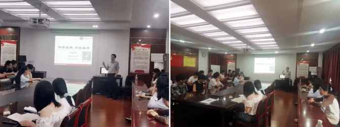 刘丽君副院长做了题为“科学选择,积极备考”的辅导报告,分析了几年国内考研形势,解读了武汉纺织大学化工学院的学科特色、师资力量、奖助政策等,并分享了备考技巧。他鼓励学生们科学选择报考院校,积极备考,并回答了学生的提问。