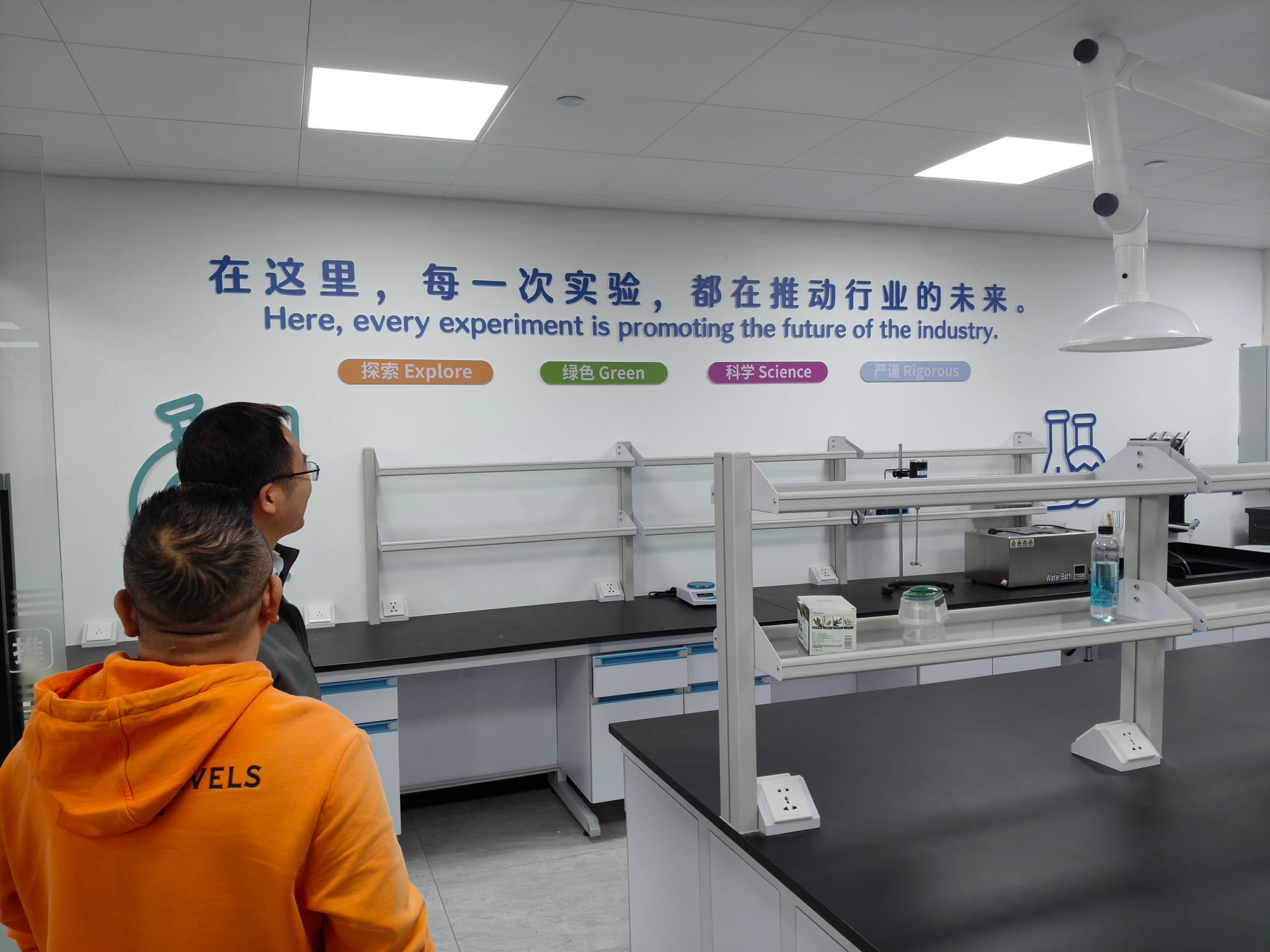 在东莞天盛化工有限公司,负责人曹林带领朱院长一行进行了参观,介绍了公司发展情况,公司深耕纺织领域二十余年,是一家专业生产染料,化学品的公司,主要经营纳米染料、直接染料、印染助剂、印花色浆等化学产品,未来计划聚焦阴离子抗菌剂等细分产品,攻坚行业"卡脖子"技术,进一步拓展国际市场份额。交流过程中,双方聚焦纺织行业关键领域如牛仔面料优化、废旧棉回收利用、再生面料附加值等问题展开深入探讨。