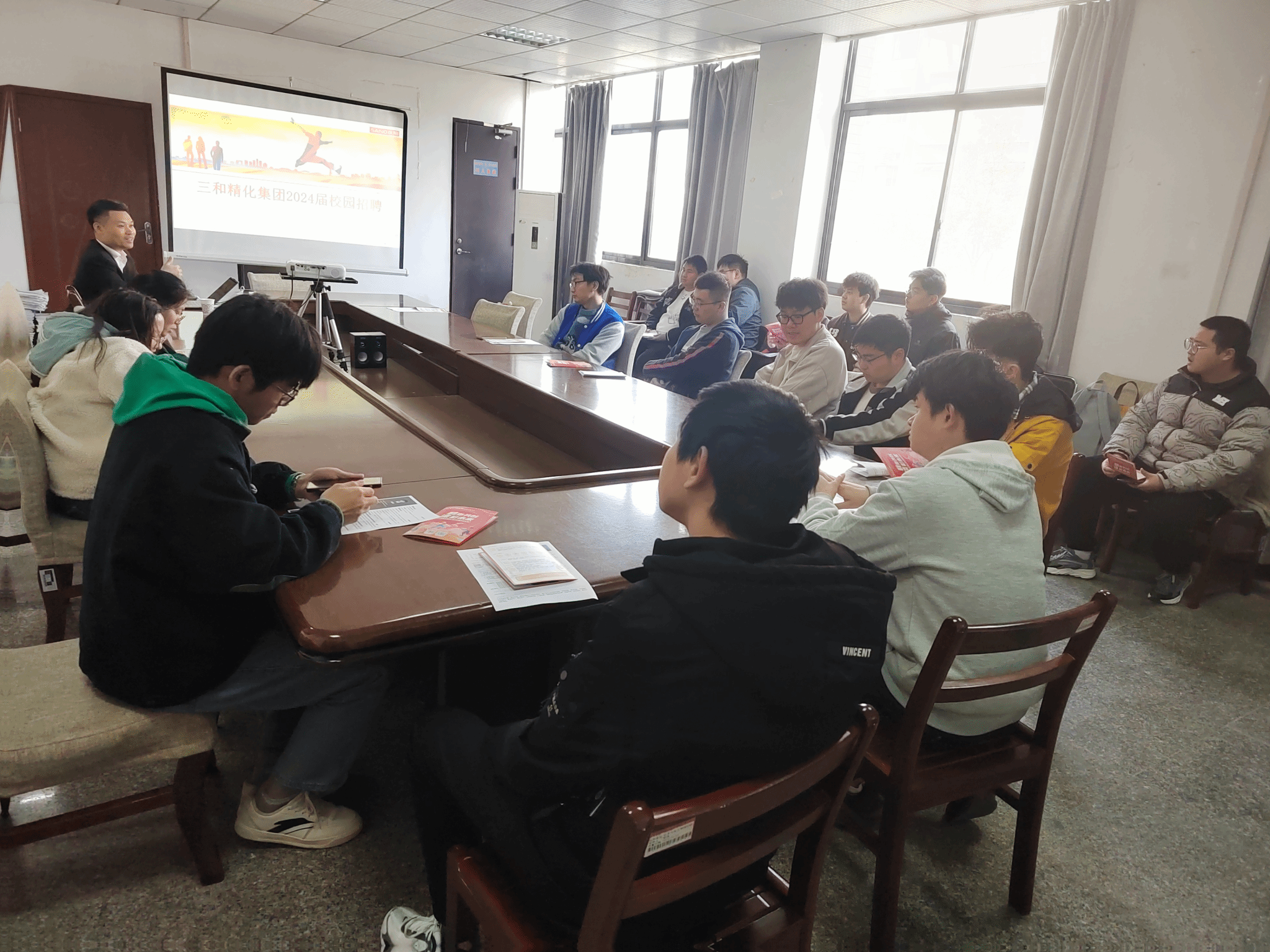 2024年3月12日上午10:00,三和精化集团招聘会在武汉纺织大学YG6-204C举行,此次招聘会由HR李永旋亲自带队来我院招聘化学类专业毕业生。三和精化集团是一家集科、工、贸一体化的科技集团,始创于 2002 年,集团对广东三和化 工科技有限公司、广东三和控股有限公司等多间制造型企业的产品进行监制,并致力于气雾剂、 有机硅、合成胶、润滑剂(润滑油、润滑脂)、防水建涂、木器漆(家具漆、装修漆)、日化等其他 产品的研发、制造及销售,旗下拥有七大专业生产基地(广东中山、广东顺德、河南濮阳)。 三和精化集团以“三和”为品牌进入中国市场,以“SANVO”为品牌进军国际市场,以“科 技造福生活,创新引领未来”为企业使命,2020 年在香港交易所 HK 主板上市(股票代码:0301.HK), 目前已发展为国内车用修养护品和建筑装饰材料两大领域的精细化工产业知名品牌。张家
