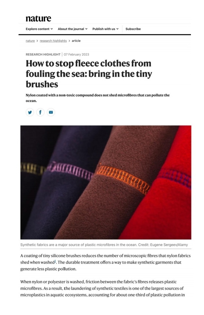 据文章显示:为减少海洋纺织织物污染,Sudip Kumar Lahiri团队研发制作了一层光滑无毒的聚合物线,即“神奇的小刷子”。同时,使用尼龙纤维和聚合物中的化学基团形成紧密结合的分子将“刷子”固定在织物上。反复洗涤后,拥有该涂层的织物微纤维释放量减少93%,为保护海洋环境和可持续服装制造提供了全新的路径。