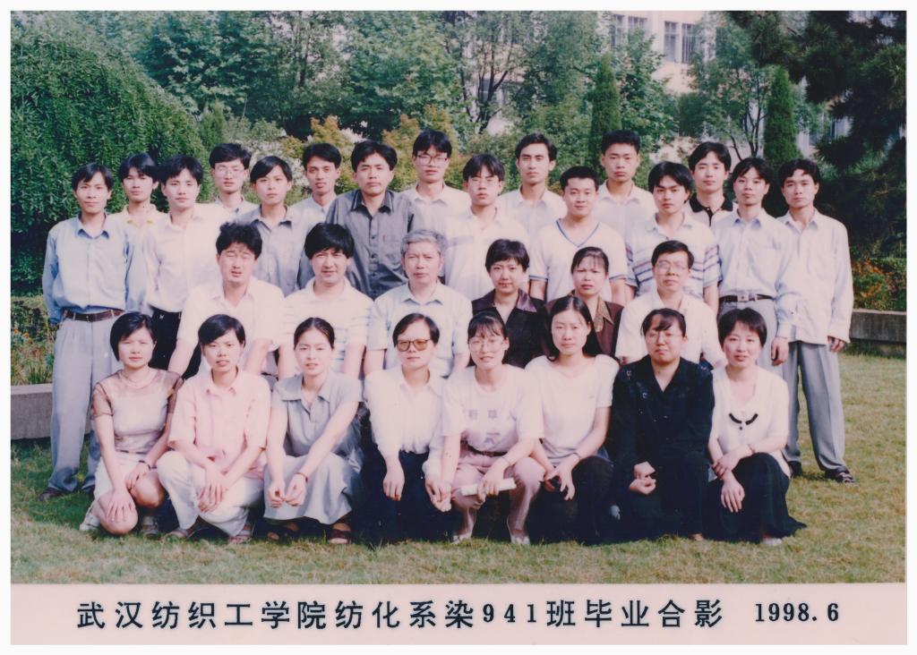 (武汉纺织工学院纺化系染942班毕业合影)