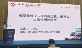 武汉纺织大学化学与化工学院洪少力老师受邀担任生物磁学与磁性纳米材料论坛专题委员,并以“磁基微流控芯片中高灵敏、便携式生物检测的研究”为题,围绕磁基微流控芯片中新型亲和试剂筛选,多种病原体的高灵敏检测以及自动化检测平台搭建等方面进行了学术报告交流,并向各位专家学者介绍了武汉纺织大学和化学化工学院的相关情况。本次会议提供了大量跨学科的学术报告,拓展了研究思路。近年来,在化学化工学院和李伟教授团队支持下,洪少力老师进一步凝练研究方向,聚焦于微流控芯片中二维磁场到三维磁场的调控及其生物应用,并开发出具有特色的交互式分压单颗粒捕获微流控芯片。