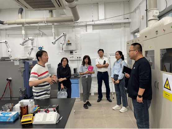 调研期间,团队还在实验中心副主任李琼的引导下,参观了华南理工大学化学与化工学院能源化学工程教学和专业实验室,团队特别关注了实验室内的特色实验项目——光伏应用产品创新实训系统及光伏充电站试点,这些前沿的设施不仅展示了华南理工大学在能源化学领域的研究深度与实践广度,也为调研团队提供了直观而生动的学习案例。