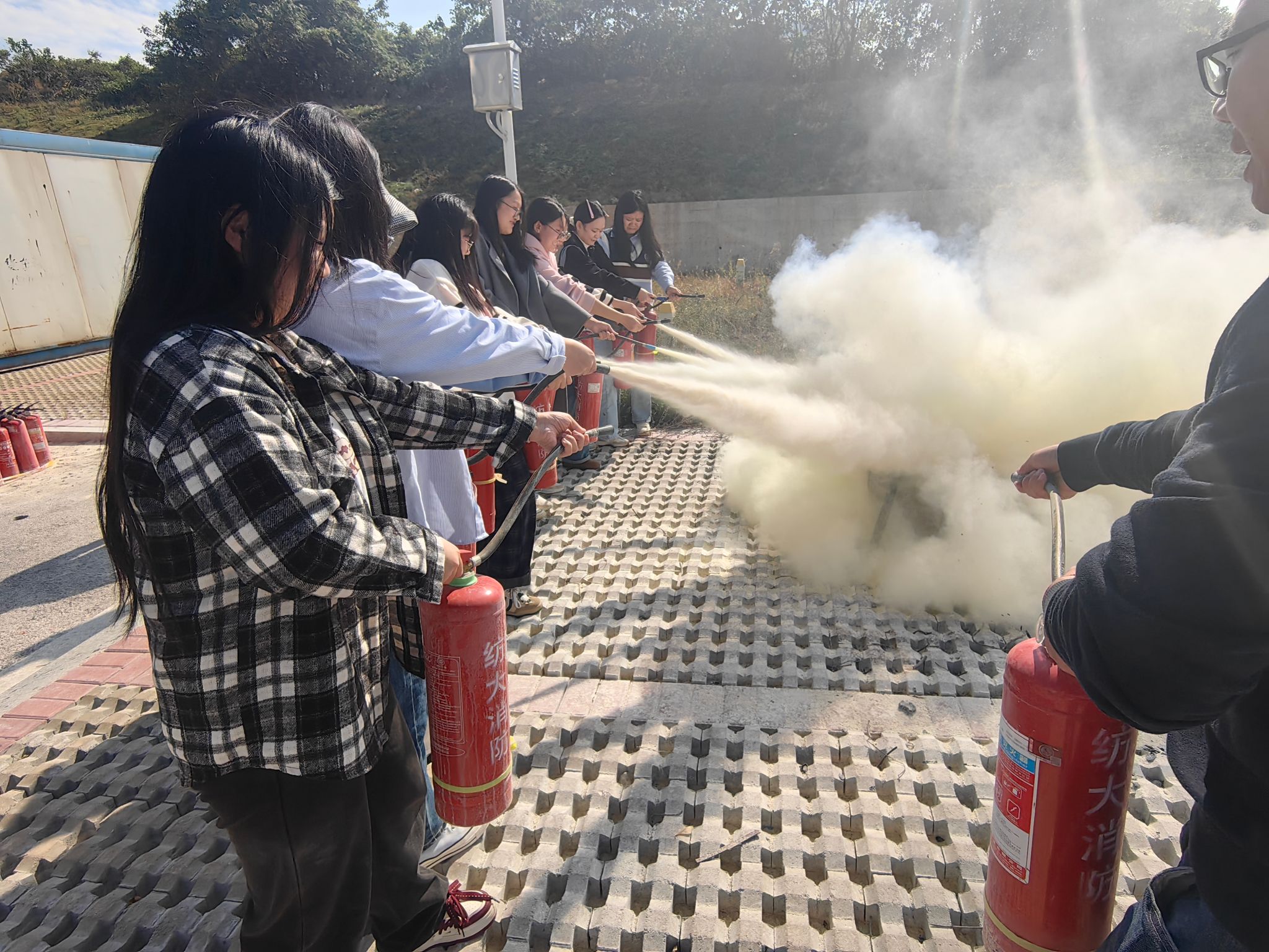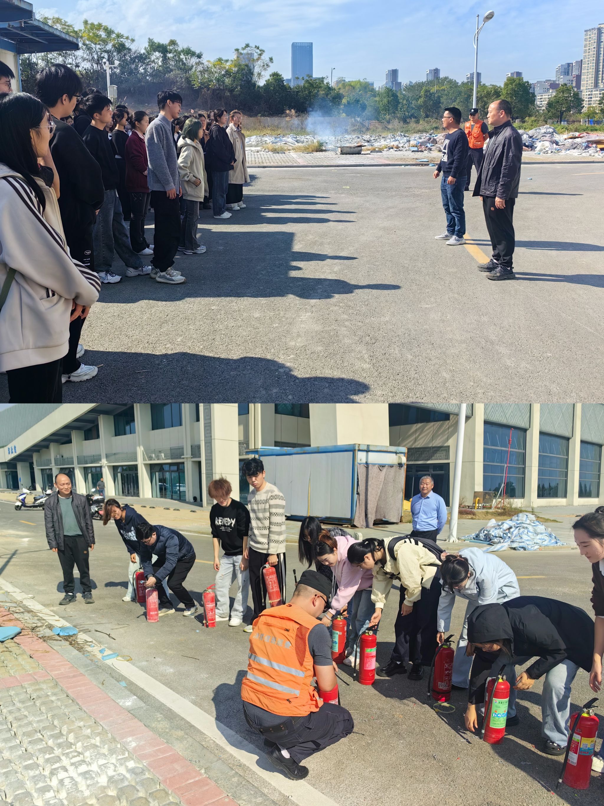 在培训环节,来自武汉纺织大学保卫处的专业消防教员为师生们详细讲解了火灾的起因分析、日常防范要点、初期火灾的快速应对方法以及火场中的有效逃生技巧。随后,在教员的指导下,师生们亲自体验了灭火器的使用方法,通过实操演练,进一步掌握了灭火技能。