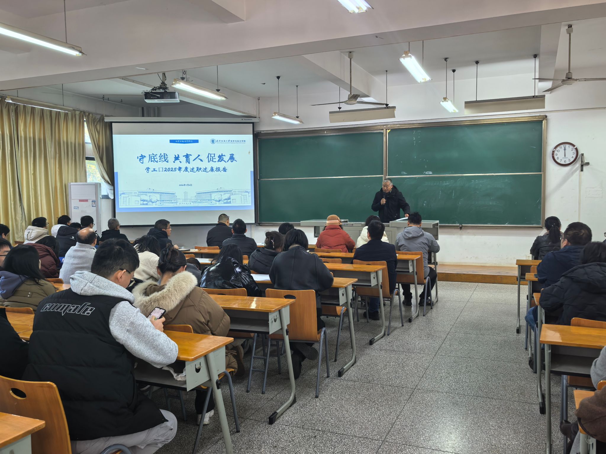 考核述职测评会结束后,学院领导班子随即召开专题部署会。会议集中传达学习了学校学位与研究生教育工作会、审计整改工作推进会精神,深入解读了《武汉纺织大学2025年工作总结》的核心内容,并结合学院实际,对期末考试监考纪律强化、实验室安全隐患全面排查整治、寒假学生留校服务保障及安全管理等近期重点工作作出全面部署、提出明确要求。