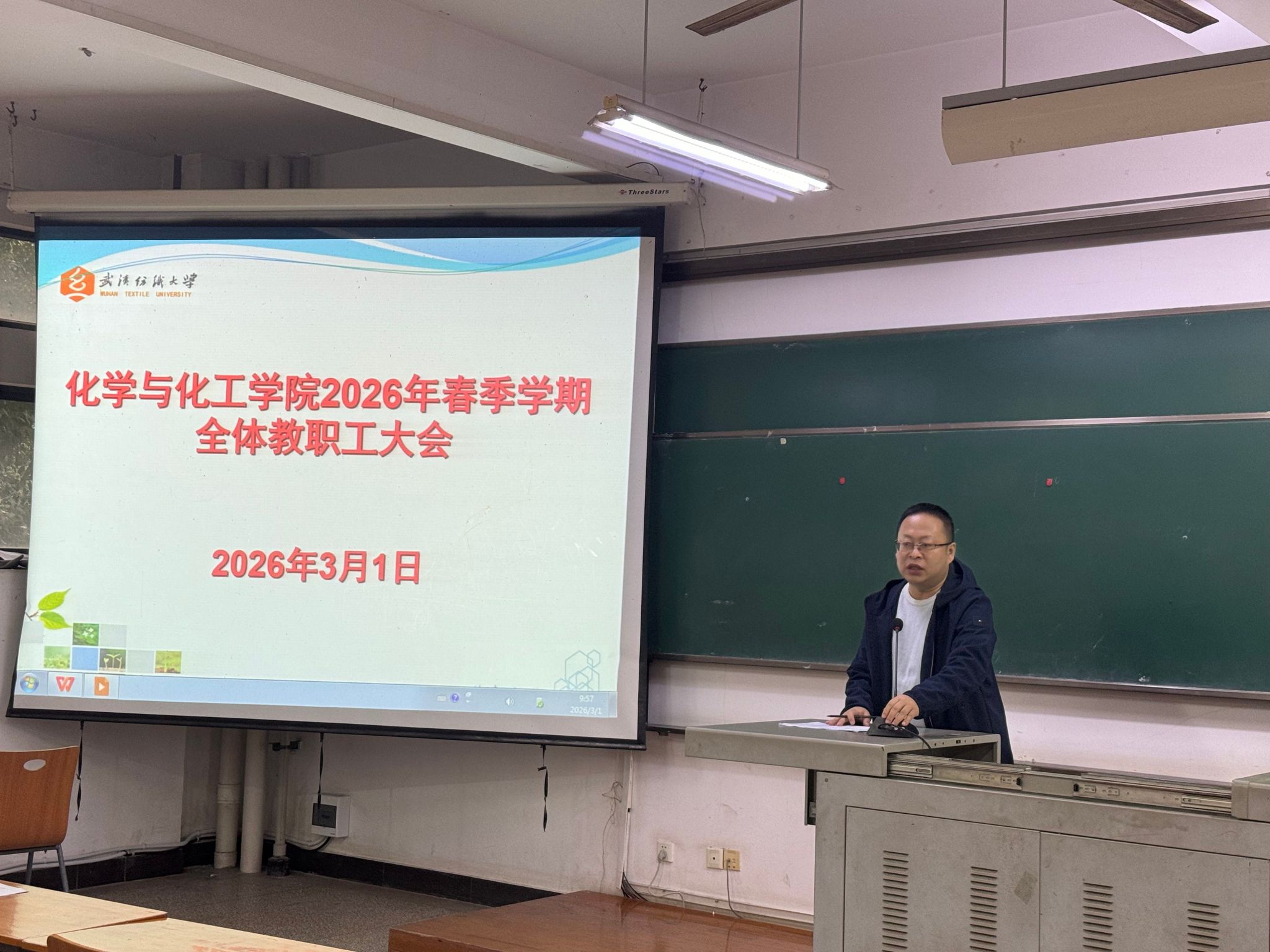 春启新程,奋进正当时。2026年3月1日上午,化工学院2026年春季学期全体教职工大会在阳光校区崇礼楼220教室顺利召开,全体教职工参会,学院党委书记杜勇主持会议。会议全面总结过往工作,系统部署新学期各项重点任务,凝聚全院共识,为新学期学院高质量发展指明方向、明确路径。