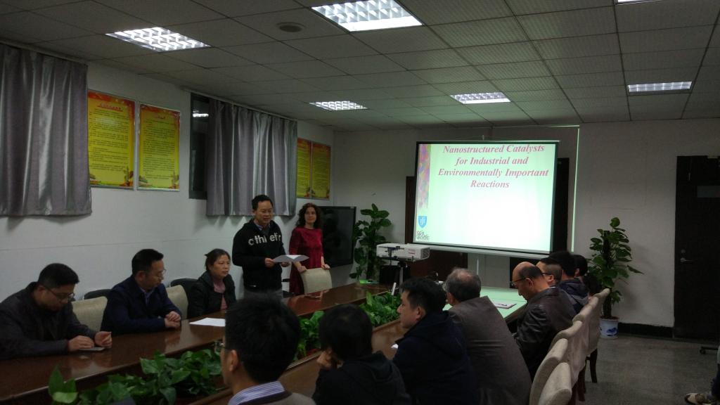 接着,Sónia研究员向与会人员开展学术报告,向学院师生介绍了其课题组研究的纳米金和金属氧化物催化剂在工业化工中间体合成和环境保护中的重要应用,如环己烷和环己醇的选择催化氧化;CO氧化、N2O分解、CO2氢化和挥发性有机物(VOCs)的矿化等,并在报告结束和师生进行了热烈的讨论。