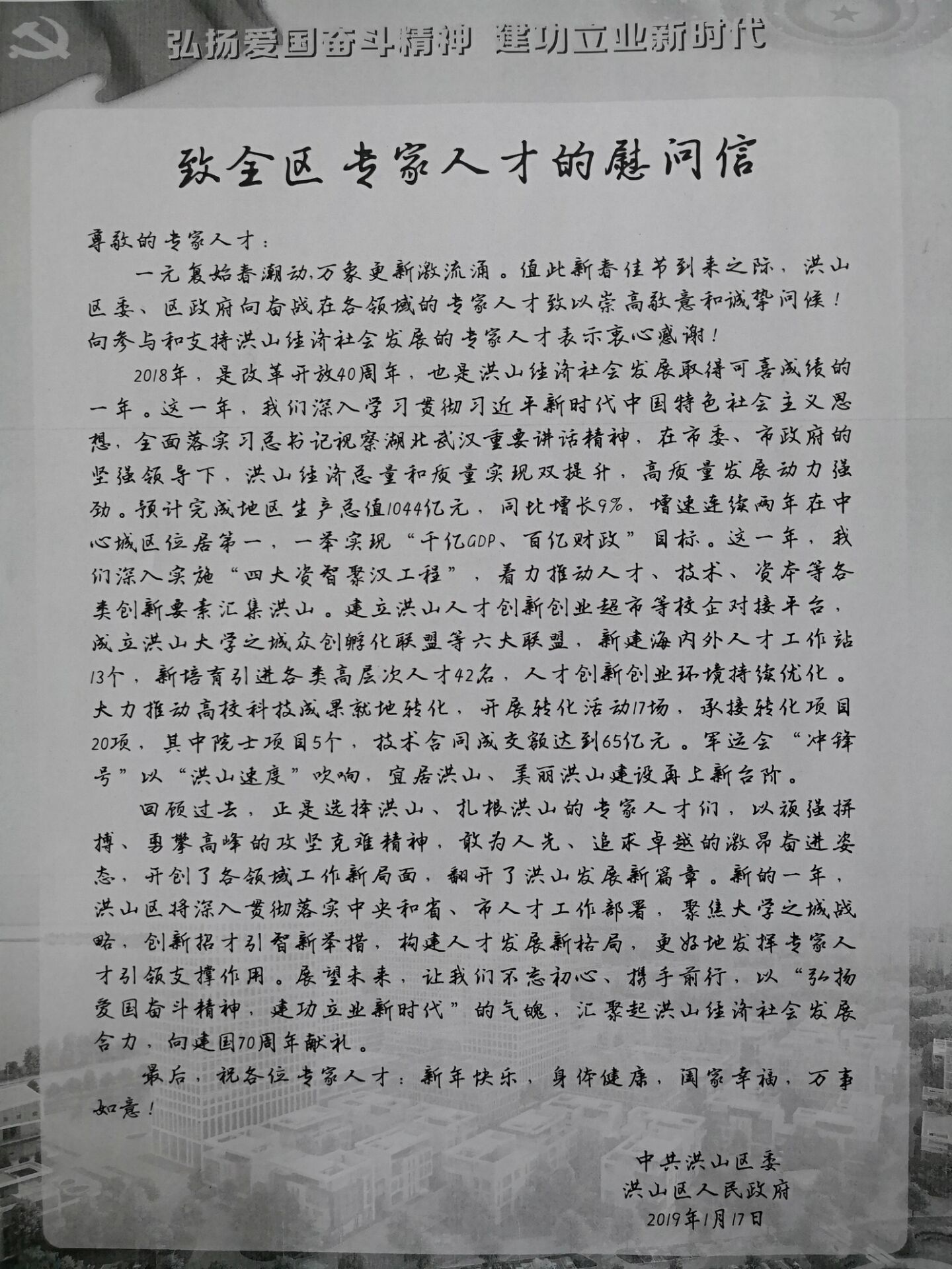 夏教授表示,非常感谢洪山区区委区政府对人才的重视,将进一步发挥自身的专业优势,为洪山区经济社会发展做出新的贡献。